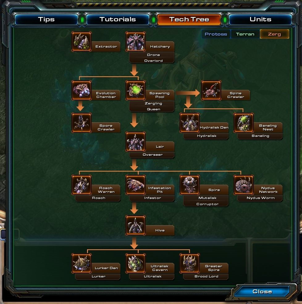 I think I want to play as Terran, no other unit looks as radical as Thor. And now I know exactly what buildings I need to create them…6 months ahead of time. The Terran and Zerg trees are below…