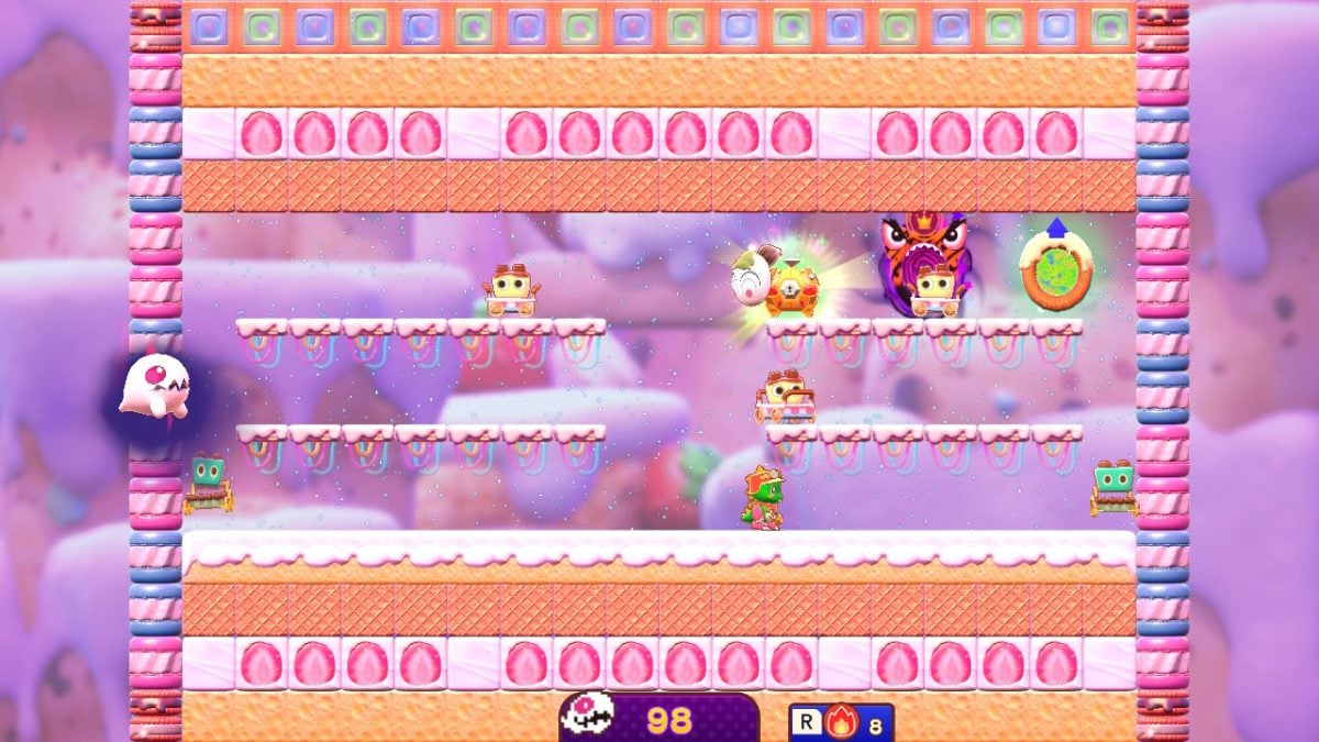 Beyond the standard stages, Bubble Bobble Sugar Dungeons also delivers traditional enjoyment with Bubble Symphony. This delightful bonus sees players lure enemies into bubbles or employ their humanoid manifestation’s wands to combat them in subsequent stages, earning treasures and honors for successfully clearing every screen. This inclusion of Bubble Symphony enriches Bubble Bobble Sugar Dungeons, making the whole package feel more rewarding. However, the base game carries a lingering issue of repetitiveness, and coupled with the challenging dungeon levels, it’s too much for some players.